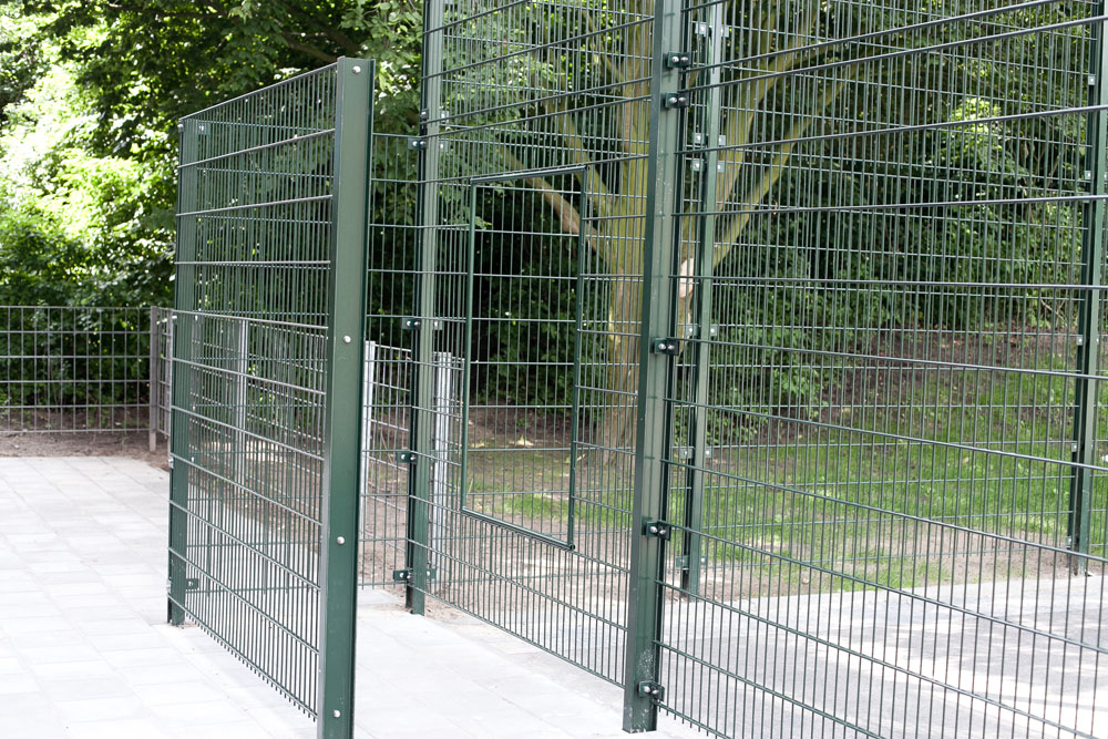 Professionele, geluidsarme voetbalkooien (of pannakooien genoemd) inclusief interieur. Hoog omsloten hekwerk rondom een speelveld, indien gewenst afgedekt met een daknet.