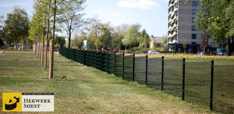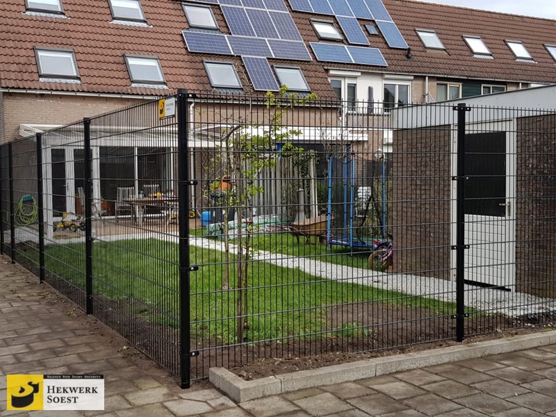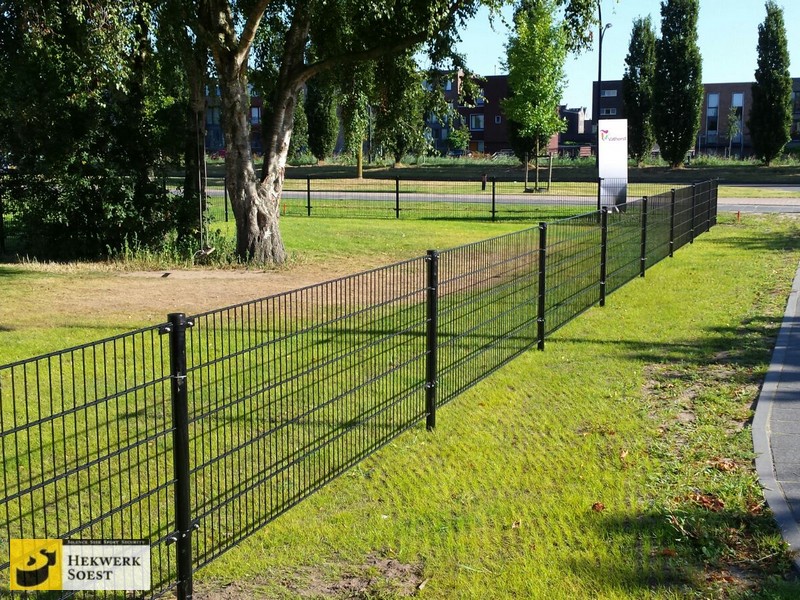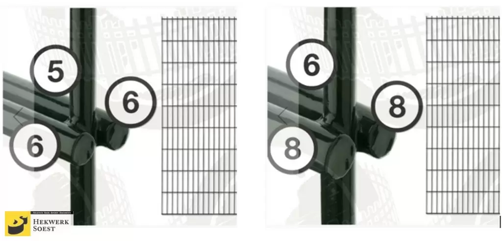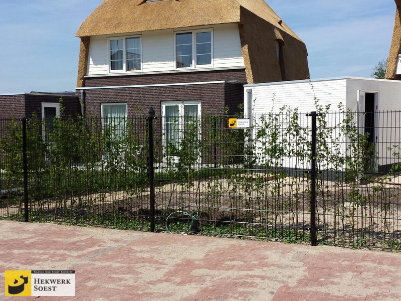 Bij Type Holland worden de dubbelstaafmatten tussen de ronde staanders opgehangen met zware beugels en rvs montagemateriaal. Omdat de prijs-kwaliteitverhouding van dit systeem het beste is, verkopen we dit het meest. Bij deze variant wordt gebruik gemaakt van dunnere en goedkopere 6/5/6 dubbelstaafmatten. Wilt u meer informatie over dit type hekwerk? Bekijk onderstaande specificaties en foto’s of neem contact met ons op.