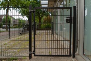Draaipoort – Enkele draaipoort met mikado spijlen