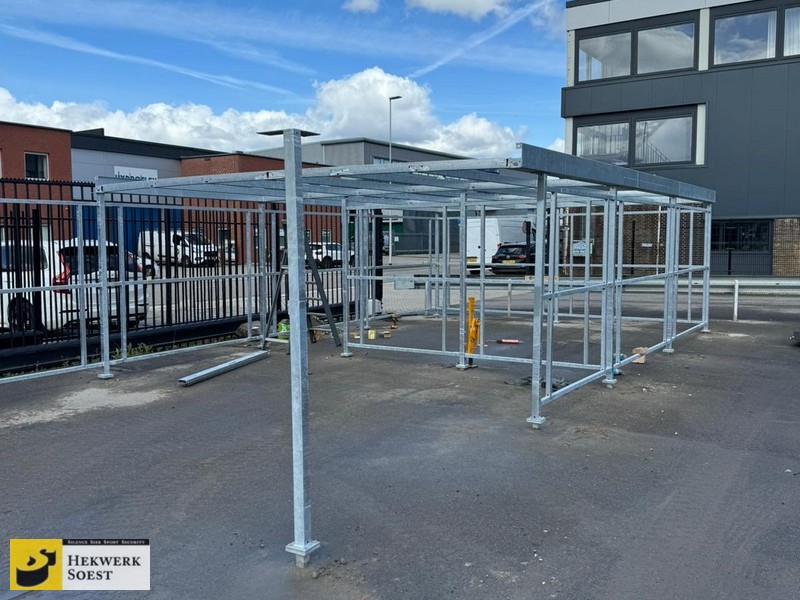 HEKWERK SOEST levert en monteert ook fietsoverkappingen. Of u het nu fietsoverkapping, fietsenberging, of fietsbox noemt; elektrische fietsen, brommers en scootmobielen kunnen veilig en droog geparkeerd worden. Uiteraard kunt u ook losse materialen opslaan in deze stalling van metaal. Voor welk doeleinde u deze fraaie metalen overkapping ook gebruikt, uw bezit wordt zeer goed beschermd tegen diefstal.