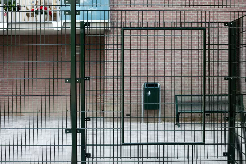 Om de geluidsoverlast te beperken, hebben we ons gespecialiseerd in het ontwikkelen van een geluidsarme pannakooi. Het type ‘Silence’ is een type hekwerk waarbij gebruik wordt gemaakt van trillingsdempers en waarbij geen geluidsoverdracht van metaal op metaal voorkomt. Zeer geschikt indien de kooi in of dichtbij woonwijken wordt geplaatst. Deze geluidsarme pannakooien plaatsen we veel voor gemeenten.