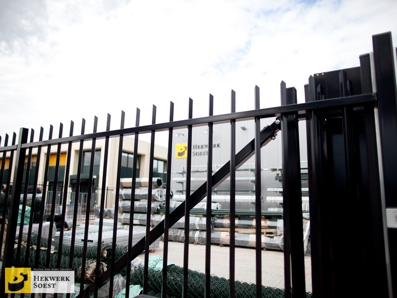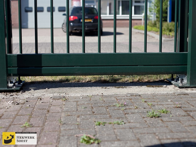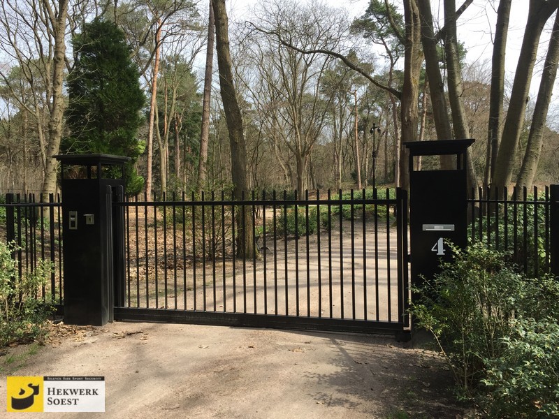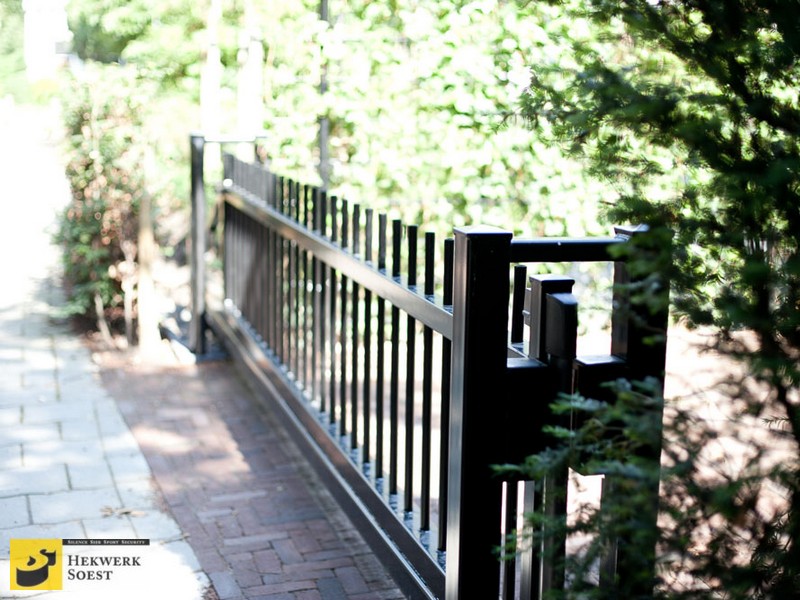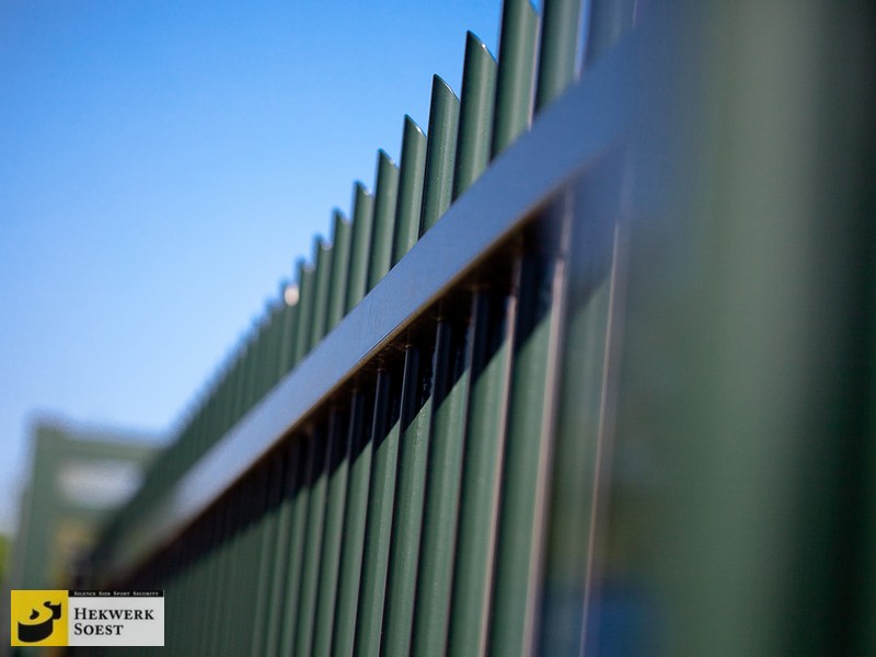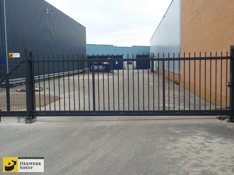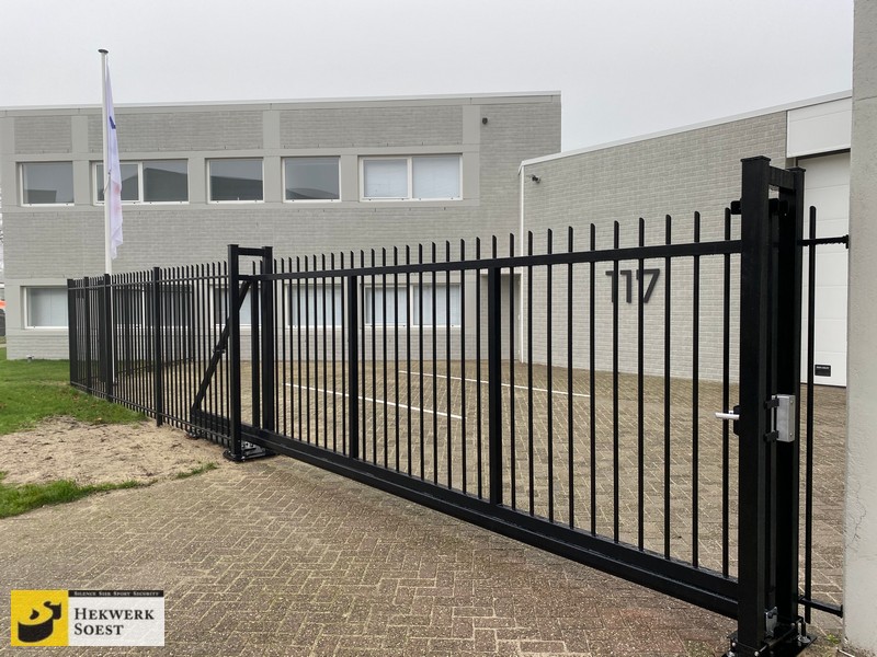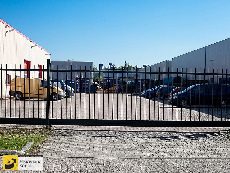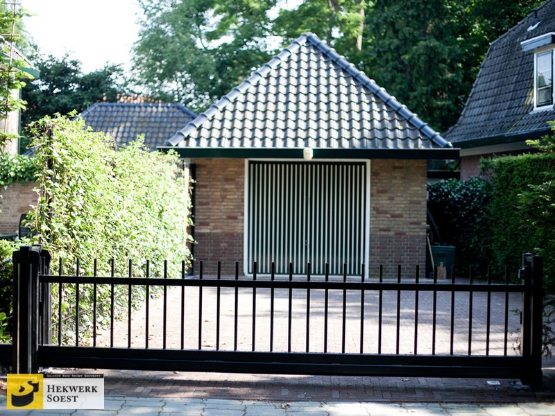 Stoere en robuuste schuifpoort met doorgestoken spijlen. De spijlen kunnen rond of vierkant zijn. Tevens kunnen ze recht of overhoeks gelast worden. Bij dit type steken de spijlen door en kunt u ook nog eens kiezen of u ze recht of afgeschuind wilt hebben.