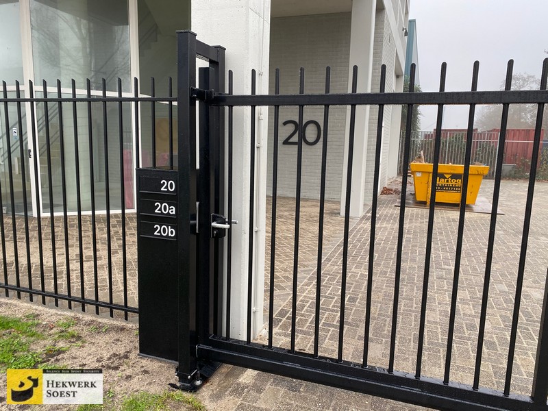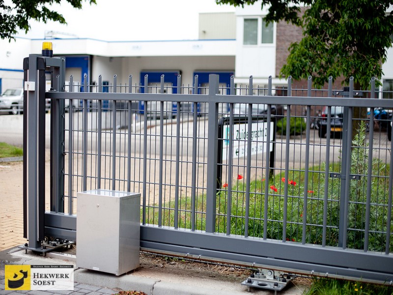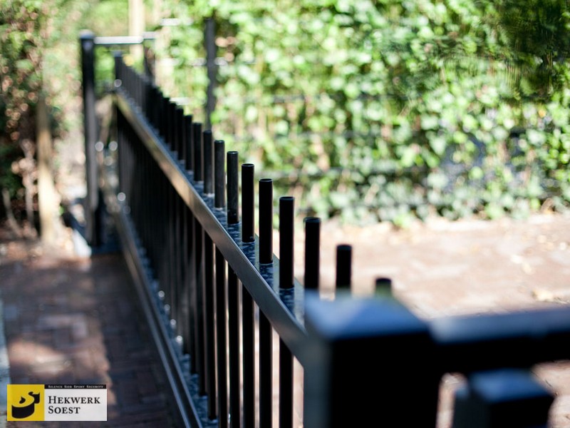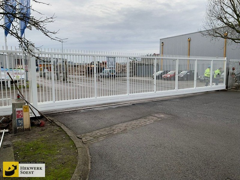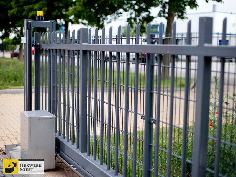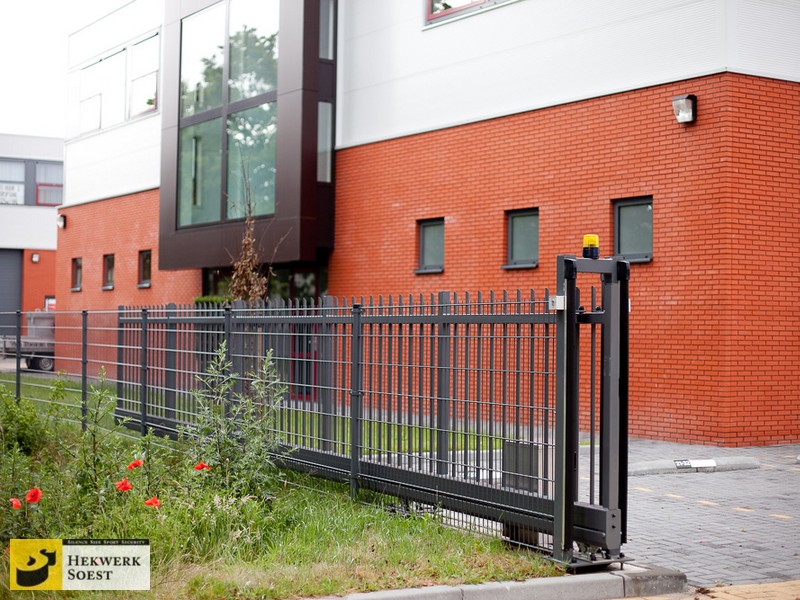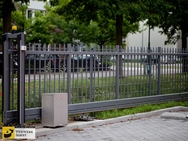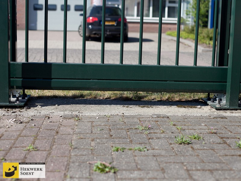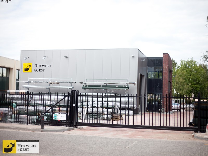 Stoere en robuuste schuifpoort met doorgestoken spijlen. De spijlen kunnen rond of vierkant zijn. Tevens kunnen ze recht of overhoeks gelast worden. Bij dit type steken de spijlen door en kunt u ook nog eens kiezen of u ze recht of afgeschuind wilt hebben.