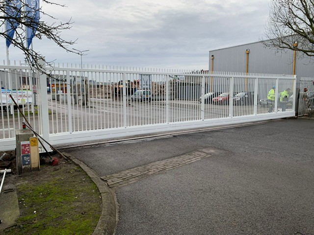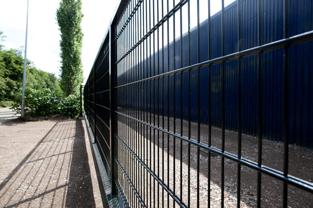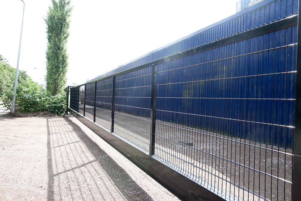 Een schuifpoort met dubbelstaafmatvulling is een goede oplossing om uw bedrijfsterrein af te sluiten.