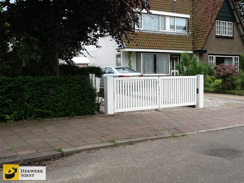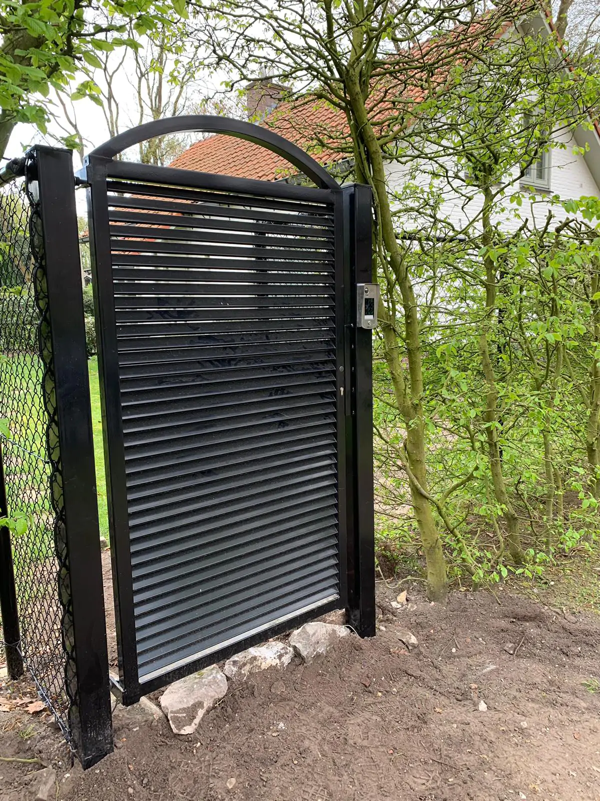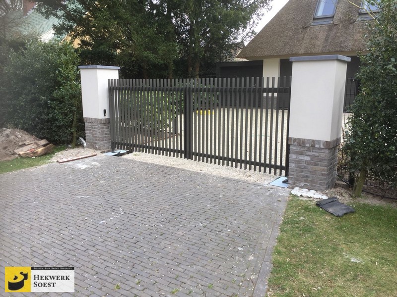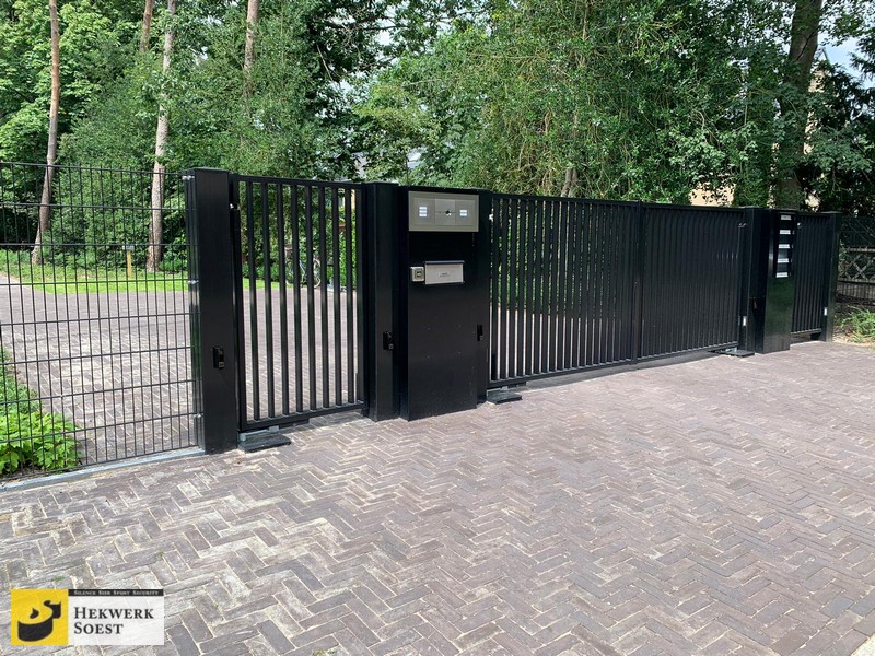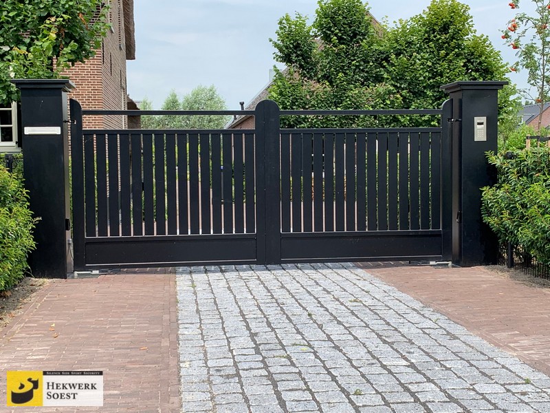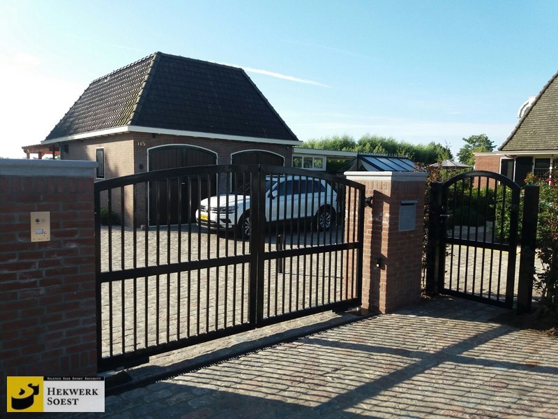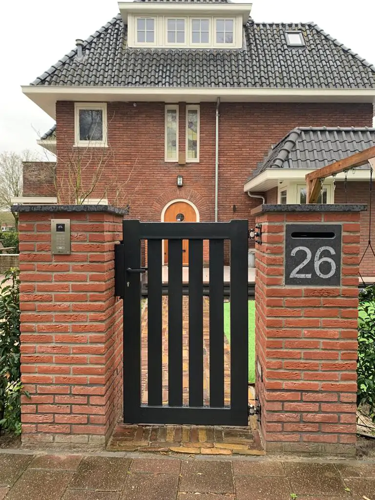 Deze sierpoorten met bijpassend hekwerk wordt gemaakt met lamellen. U bepaalt u uw eigen hoogte en breedte en hoe u de lamellen in het hekwerk wilt hebben. Dat kan horizontaal, verticaal, schuin of een combinatie hiervan. Ook de schuinte waarmee de lamellen worden gelast in het hekwerk kunt u bepalen. Zo kunnen ze recht, maar ook schuin erin. Wel of geen doorkijk? Ook kunt u kiezen welke deurgreep u wilt.
