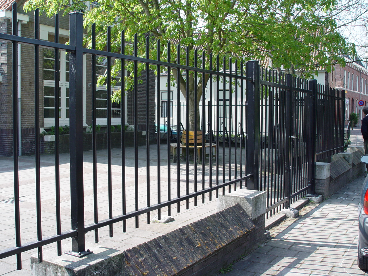 Spijlenhekwerk - Spijlenhek - Spijlenpoort Mikado of Mykadoo van Hekwerk Soest B.V. bij een plein