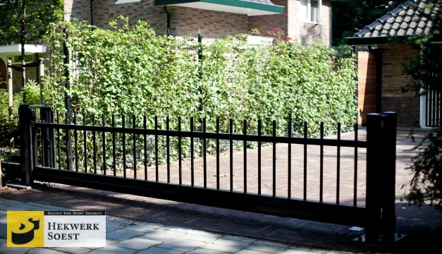Spijlenschuifpoort - Spijlenhekwerk - Spijlhekwerk - Spijlenhek met doorgestoken spijlen van Hekwerk Soest B.V.