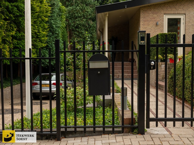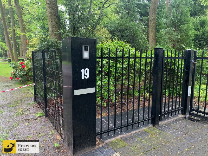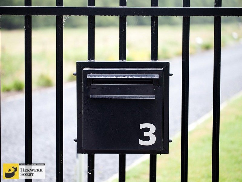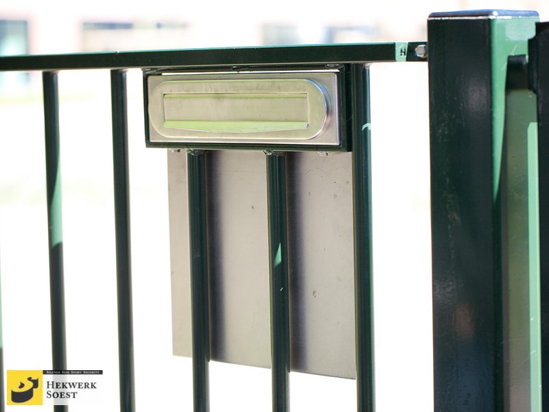 Brievenbus in spijlenhekwerk -spijlhekwerk - schuifpoort van Hekwerk Soest B.V.