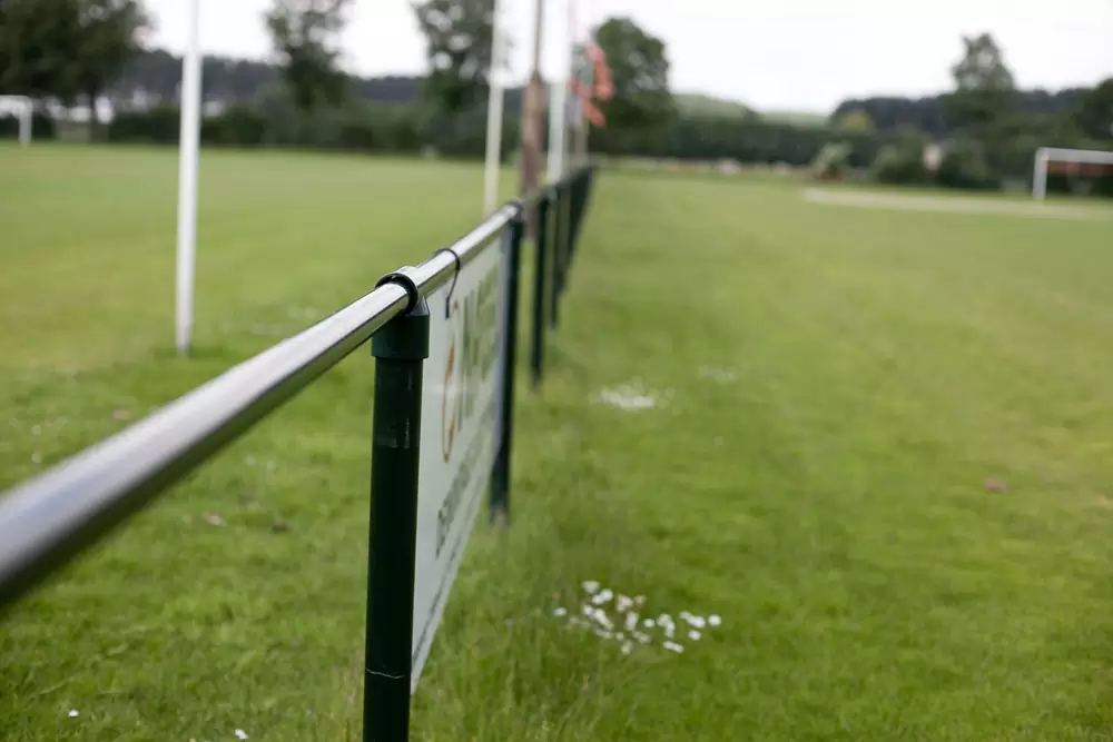Om speelvelden af te schermen kan een eenvoudige speelveldafscheiding worden geplaatst. Standaard wordt gebruik gemaakt van ronde staanders met ronde bovenbuizen.