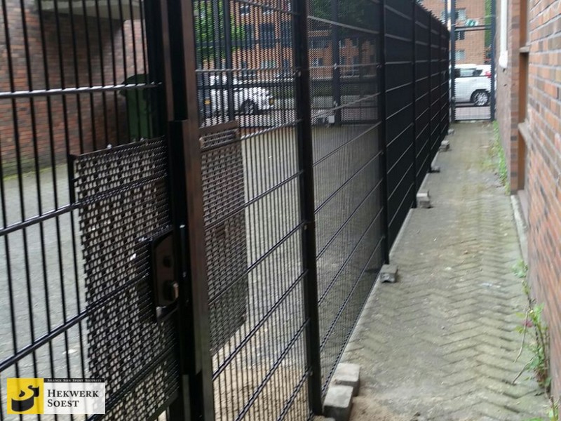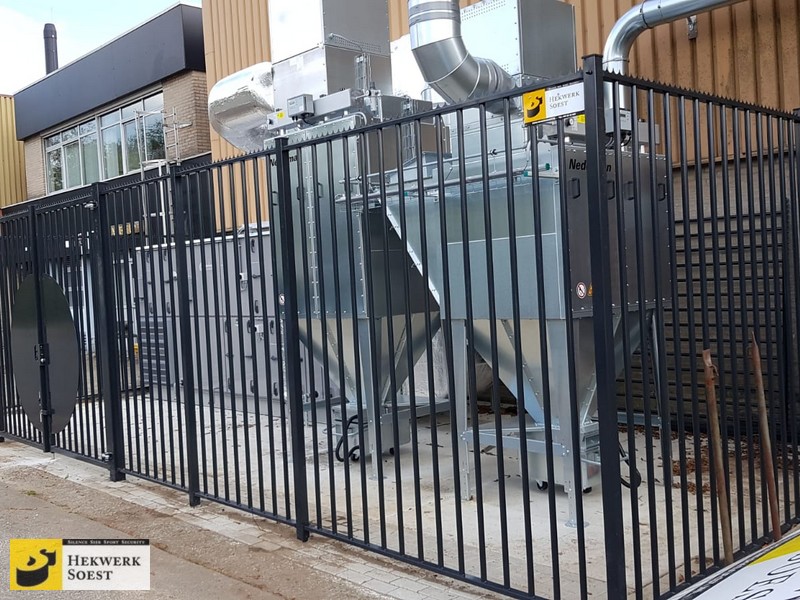 • Afschermplaat en indien nodig ook één op het aangrenzende hekwerk.