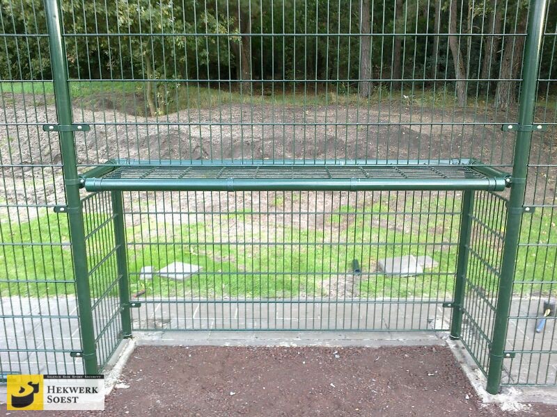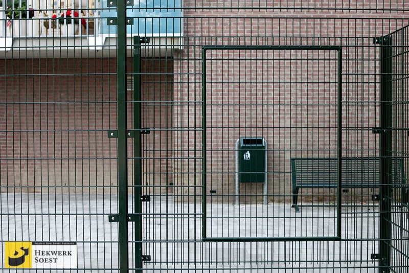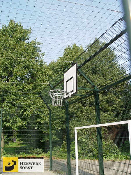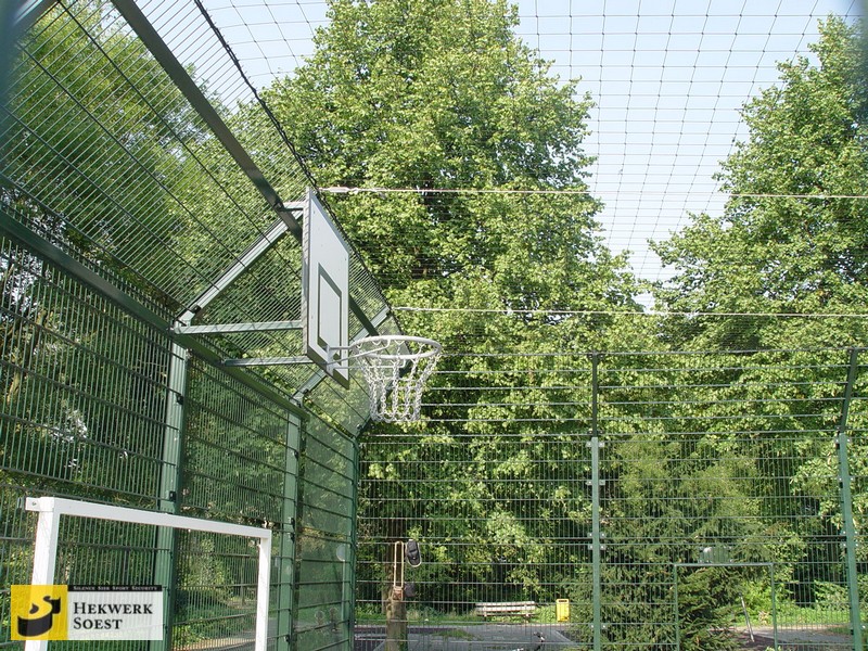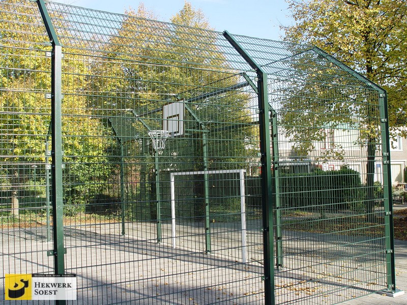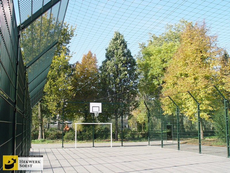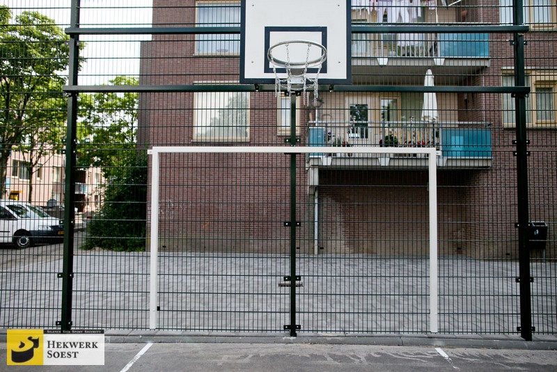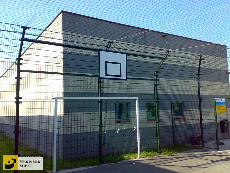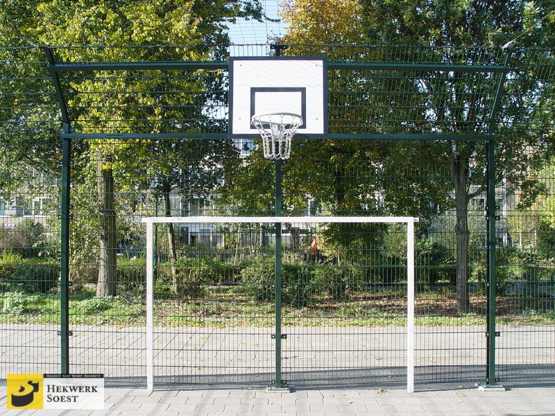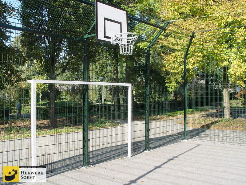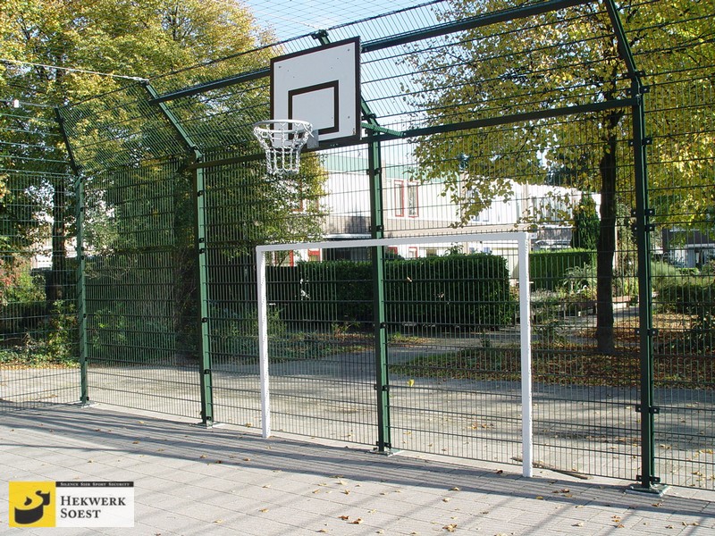 • de invulling van de kooi (doelen, basketbalborden etc)